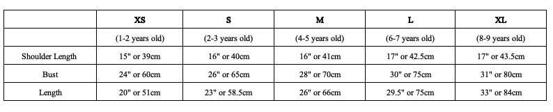 Model's Measurement : Bust: 25inch/ 63cm ; Waist: 22inch/ 56cm ; Hips: 27inch / 68cm ; Neck: 10.5 inch/ 27cm ; Shoulder: 13.5inch/ 35cm ; Height: 129cm ; Weight: 25kg (Model is 8 years old, wearing L size)