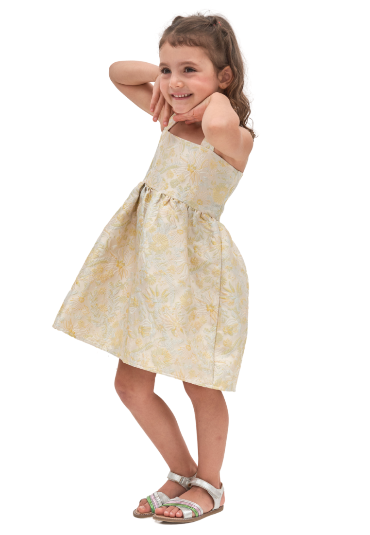 Little YueXi Fit and Flare Jacquard Dress (Yellow)