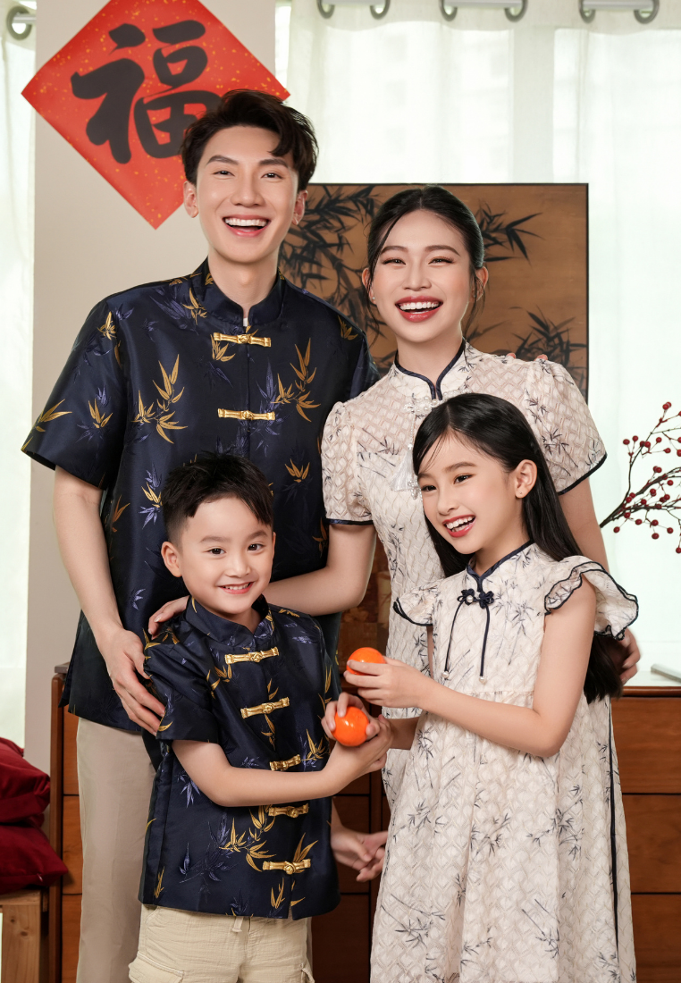 Little Xiu Zhu Bamboo Elements Boy Samfu Short Sleeves Top (Navy Blue)
