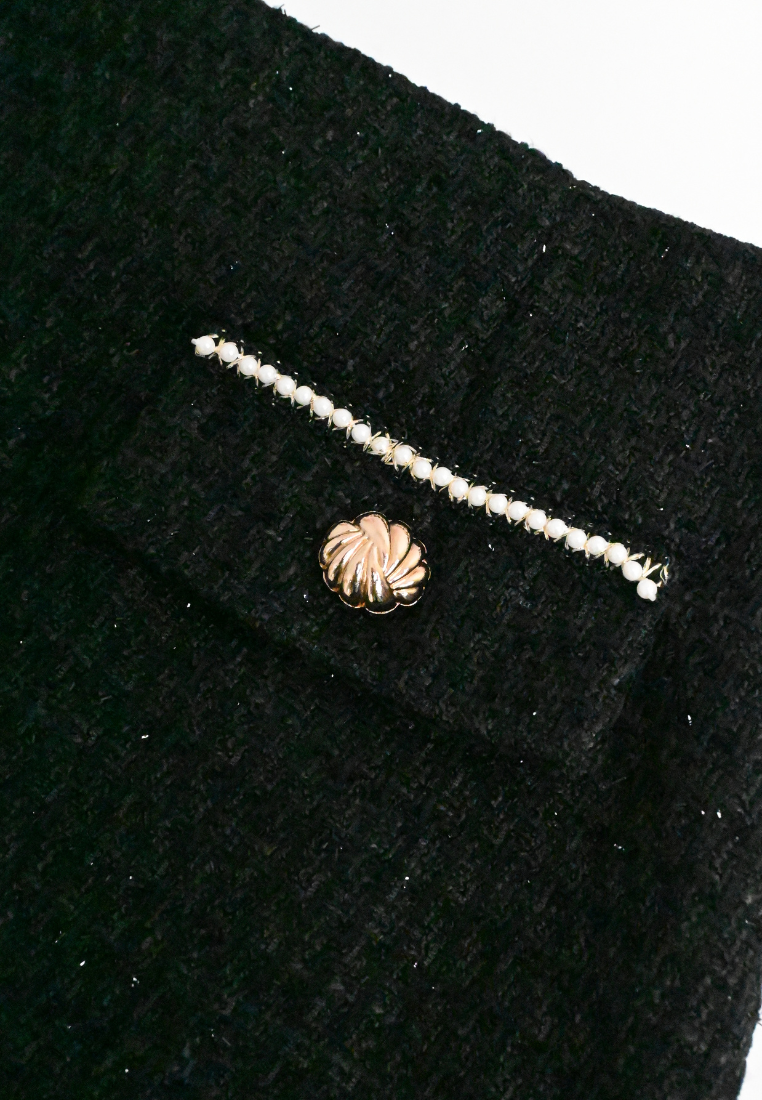 Lucienne Decorative Flap Tweed Mini Skirt (Black)
