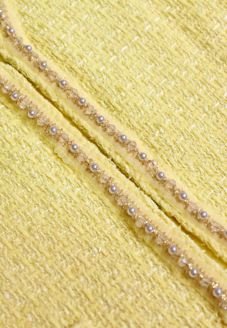 Amélie Pearl Trims with Gold Buttons Tweed Jacket (Yellow)