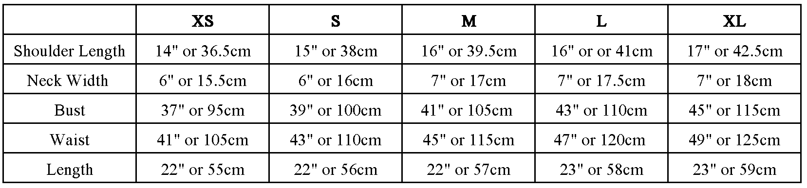 Measurements :